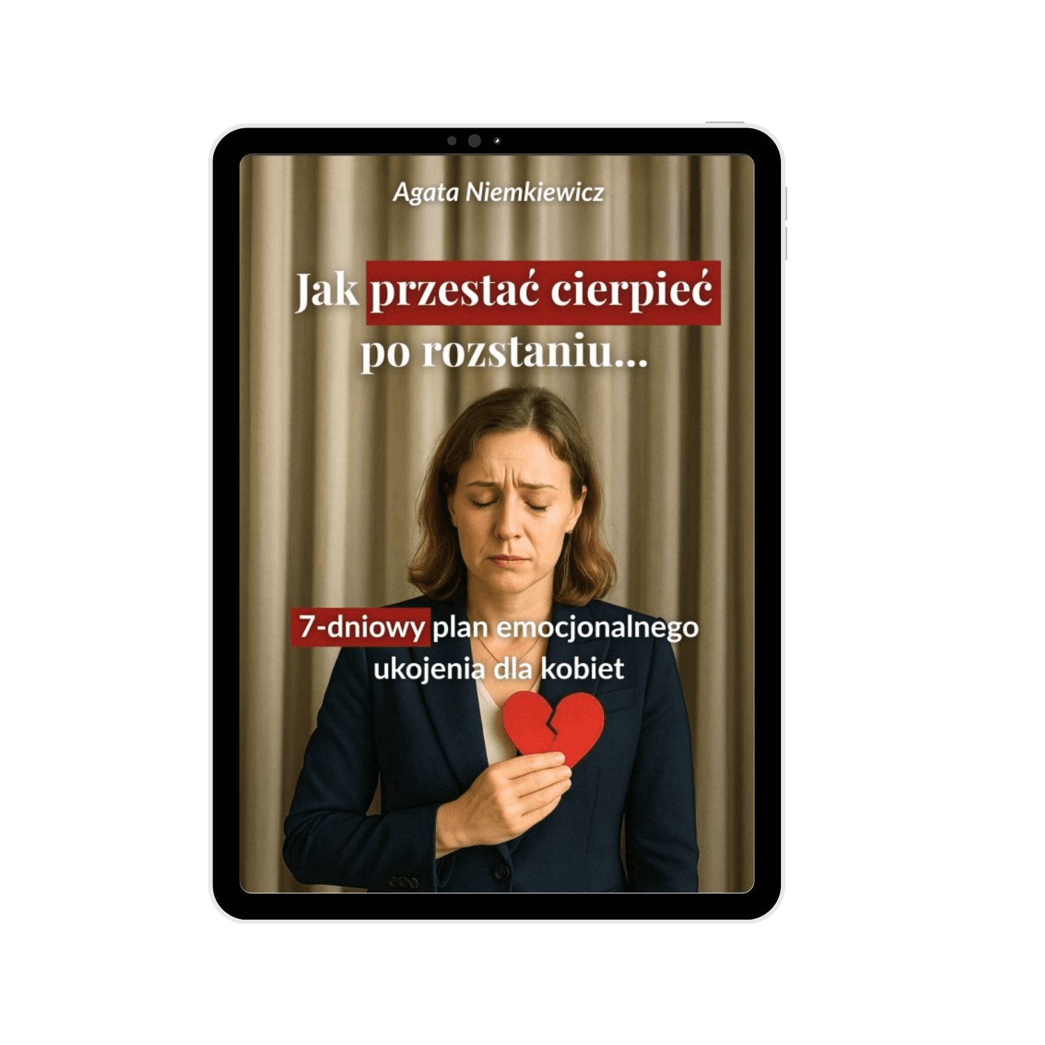 Ten e-book to Twoje codzienne wsparcie po rozstaniu – napisany przez kobietę, która przeszła przez to samo piekło, co Ty. W ciągu 7 dni poprowadzi Cię krok po kroku przez emocje, ból i wewnętrzny chaos, dając Ci konkretne narzędzia i zadania, byś mogła w końcu odetchnąć.